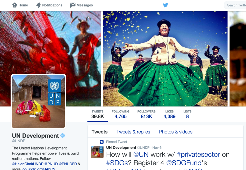 UNDP has over 800,000 followers on Twitter and over 1 million likes on Facebook.